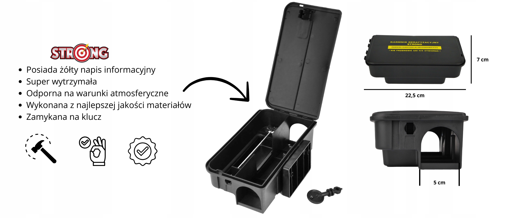 ✅ міцний - дератизаційна станція виготовлена з міцного матеріалу, який стійкий до механічних пошкоджень і забезпечує тривалий захист,