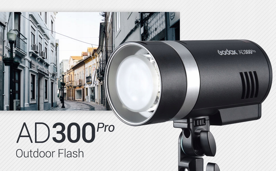 Універсальний зовнішній спалах Godox AD300Pro, 300 Вт, 2,4 ГБ, TTL, портативний спалах Speedlite з батареєю та живленням змінного/постійного струму, з кріпленням Godox і рукояткою Godox