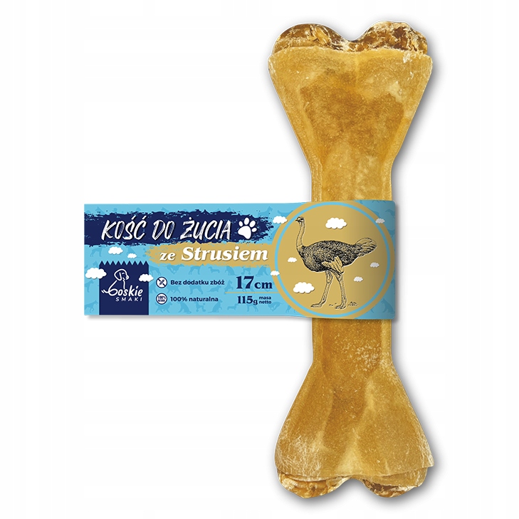 Функціональна жувальна кістка для собак зі страусом, оточеним коров'ячою шкірою
