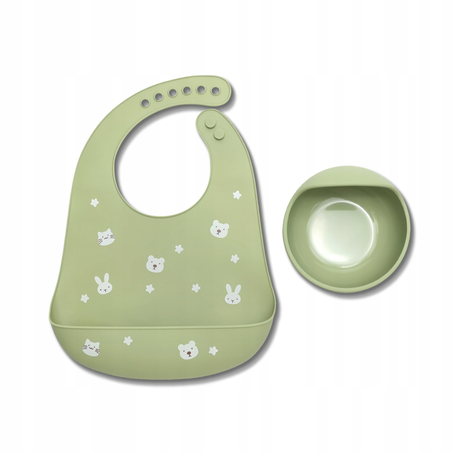Силіконовий набір ідеально підходить для годування маленьких дітей. Вакуумна основа допомагає розвинути перші харчові звички дитини, оскільки вона тримає миску в статичному положенні під час годування. Таким чином дитина не може рухатися, натискати, обертати або кидати миску. Практичний силіконовий Bib , що не дозволяє забруднити дитячий одяг. Глибока Передня кишеня ідеально підходить для лову падіння їжі. Обидва елементи легко зберегти чисті та зручні для повсякденного використання . підходить для вашої дитини, щоб розпочати свою пригоду з BLW (відлучення під керівництвом дитини) .