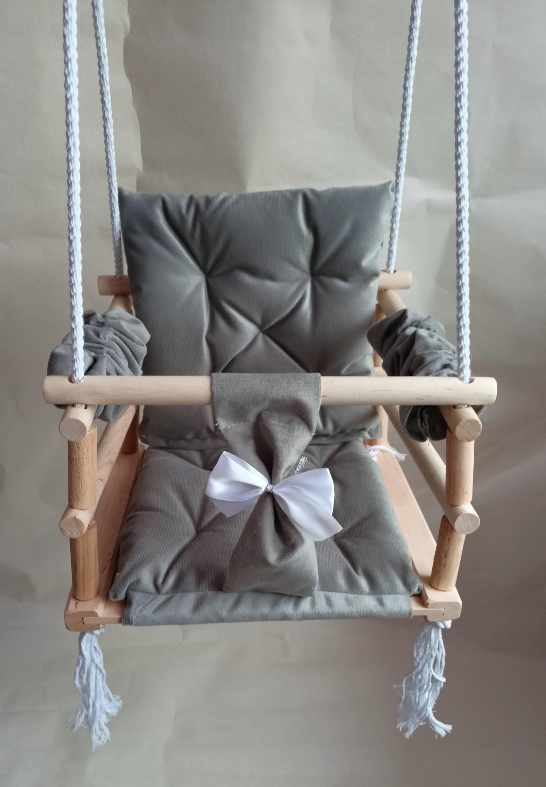 Пропонуємо вашій увазі нову гойдалку 3 в 1, яка довше прослужить вашій дитині завдяки можливості розкладання, для приклад на фото. Виготовлений з дерева та м'якого плюшу. Гойдалки виготовляємо самі. Польський продукт.
