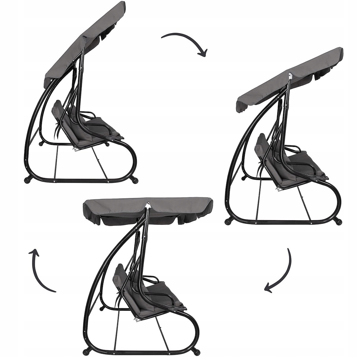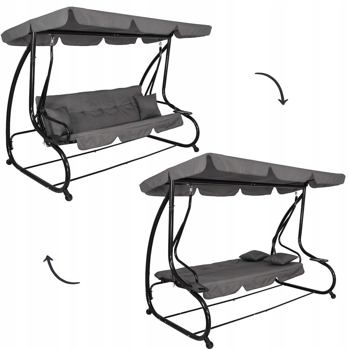 Диван-гойдалка дозволяє відпочивати літніми днями та вечорами з близькими. Зручні з'єднані подушки, розміщені на сидінні та спинці, дозволяють максимально розслабитися на свіжому повітрі. Регульований козирок дозволить індивідуально відрегулювати в будь-який час доби, щоб сонце не потрапляло на користувачів. Після розкладання спинки підвісне ліжко забезпечить повний відпочинок.