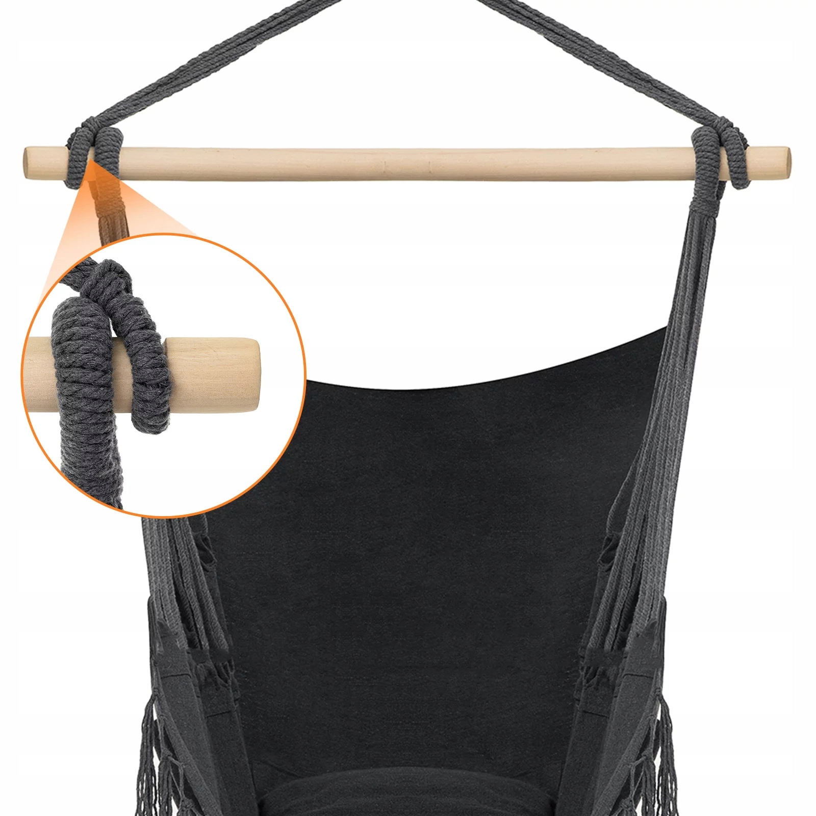 Гамак виготовлено з 65% бавовни, що забезпечує оптимальну вентиляцію. Це суттєво впливає на якість вашого відпочинку, особливо в спекотні дні, оскільки пропускає повітря і шкіра оптимально дихає. Інша частина матеріалу - це високоякісний поліестер, який гарантує гнучкість і високу довговічність сидіння. Міцні, правильно сплетені складальні лінії, з'єднані з дерев'яним оголів'ям, гарантують високу стабільність і надійність конструкції, оскільки а також його ідеальний баланс. Це дуже спрощує збірку гамака.
