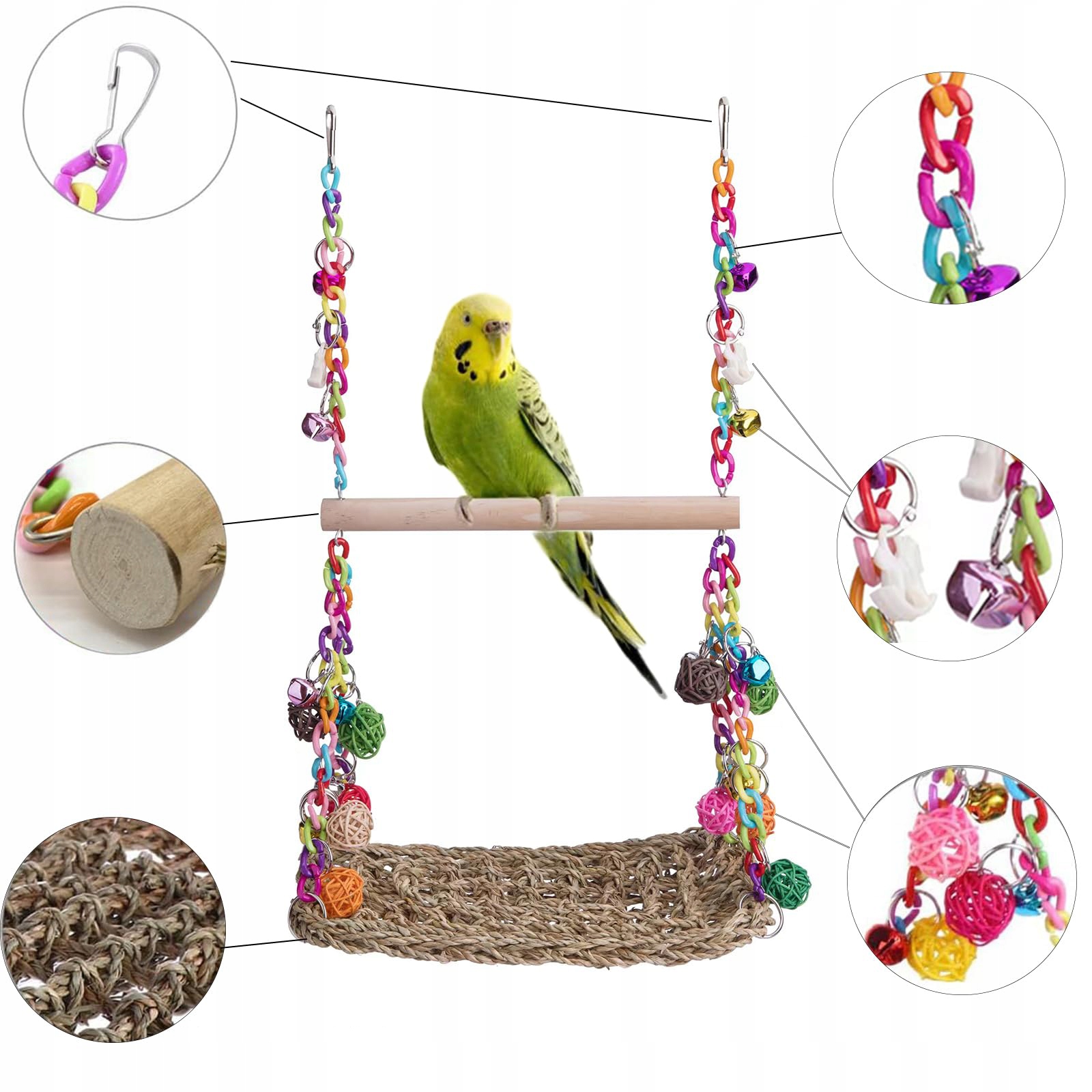 - 🦜【 веселощів】: Ця гойдалка оснащена барвистими зубами та дзвонами, що забезпечує розваги пернатними домашніми тваринами. Ці елементи сприяють інтелектуальній взаємодії та стимуляції, допомагаючи запобігти нудьзі та сприяти здорової поведінки. 4 Це не лише іграшка для птиці, але й декоративний елемент у курку, придатна для сторінок, з практичними та декоративними цінностями.