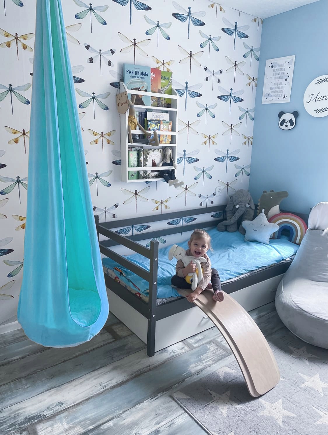 Дитяча гойдалка-кокон благотворно впливає на розвиток дітей. У дитячій кімнаті гойдалки можуть бути як зоною веселощів, так і відпочинку. Його можна повісити на стелю, садовий майданчик або гімнастичні драбини.