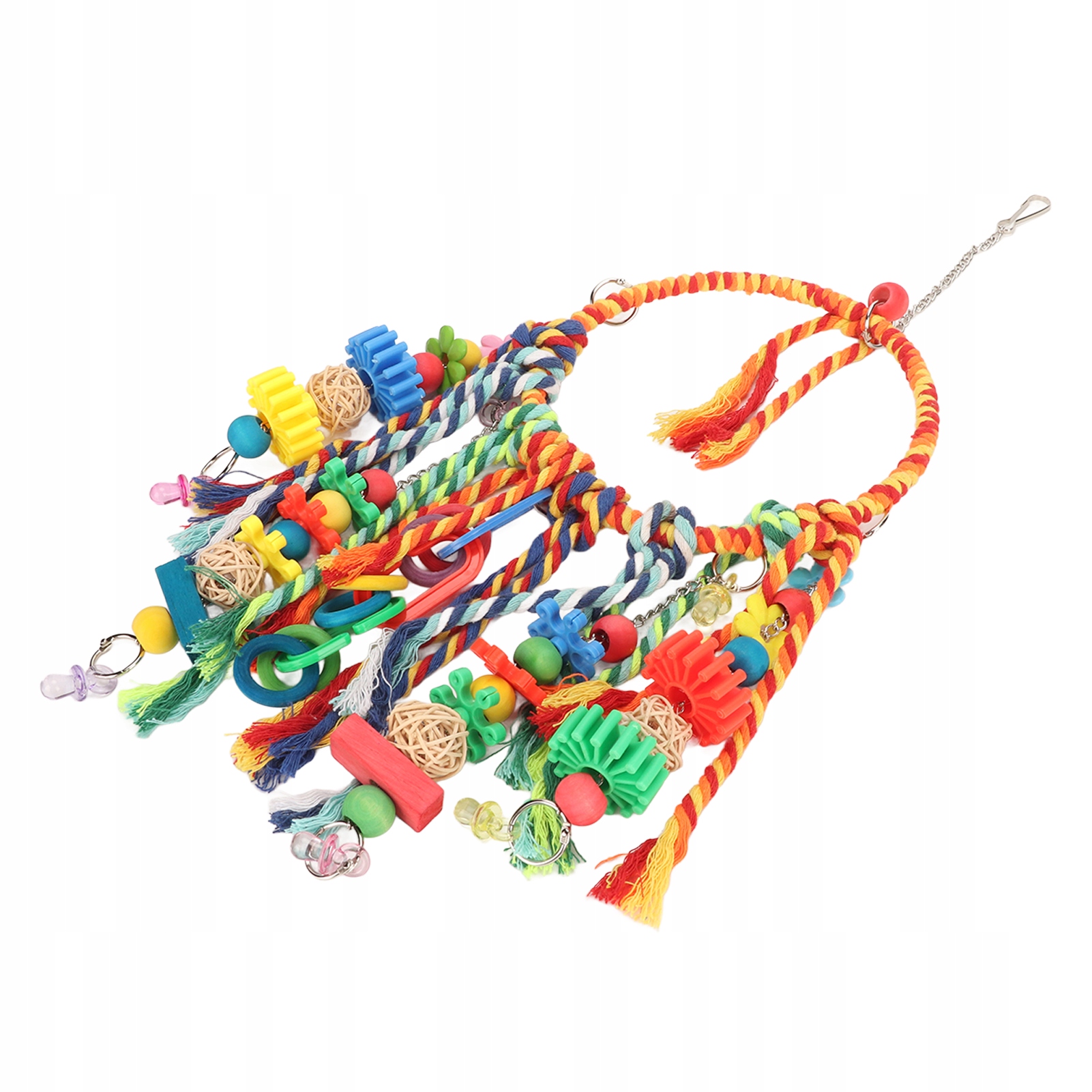 Функція: 1. [Безпечна і нешкідлива] Іграшка птахів виготовлена з натурального мотузки, коду та матеріалів з пластику, безпечного та нетоксичного, пофарбованого харчовим барвником та безпечними для домашніх тварин та жування.