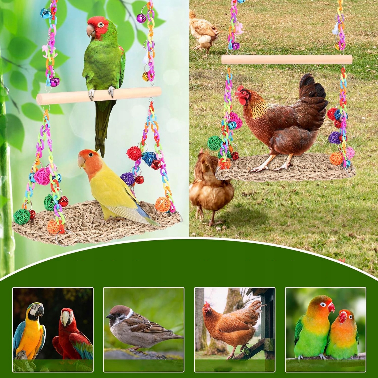 Ця гойдалка підходить для маленьких папуг і курей. Це не лише іграшка для птиці, але вона також може бути використана як декоративний елемент для Henhousery, який відповідає навколишньому середовищу курячих чайок і має практичну та декоративну функцію.