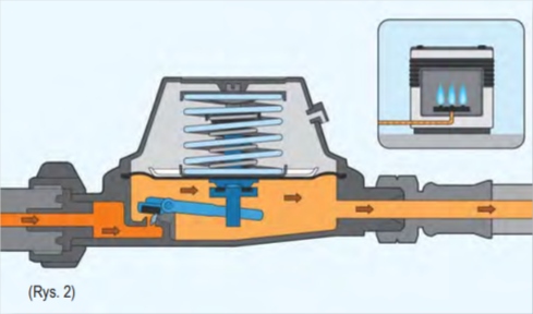 Безпечний клапан PRV вбудований у редуктор і атоматично захищає приймальний пристрій від формування високого тиску в установці. Такий тиск може виникнути, наприклад Нагріваючи редуктор або інші частини установки сонячним світлом або іншим джерелом тепла. У разі підвищеного тиску на виведенні редуктора, клапан PRV в редукторі відкривається автоматично і звільняє надлишок тиску назовні (в атмосферу). Після видування клапан закривається, і редуктор зобов'язується працювати при номінальному тиску. Редуктори за допомогою клапана PRV слід використовувати там, де вони піддаються нагріву встановлення, змінюючи погодні умови. редуктори позначені символом PRV на номінальній пластині.