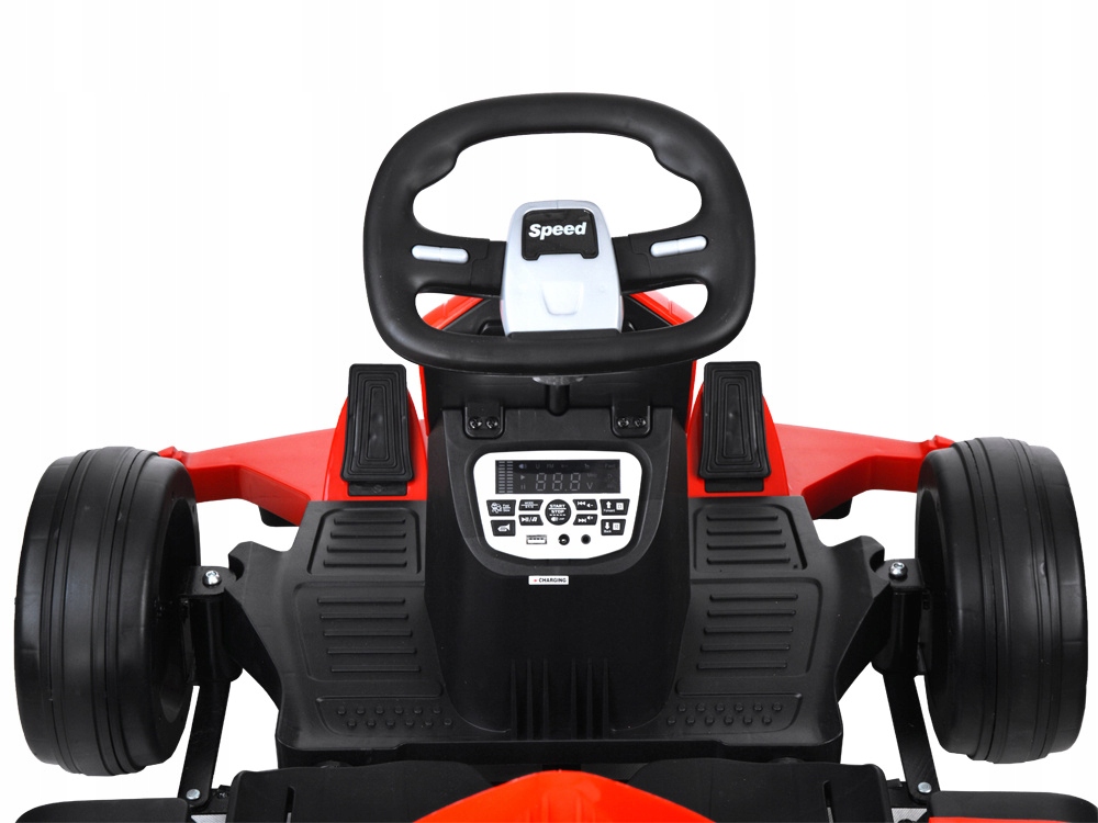 Карт на акумуляторі з дистанційним керуванням — це пропозиція для кожного молодого водія, який любить спортивні автомобілі. Картинг великий, зручний і додатково має пульт дистанційного керування для батьків. Картинг на металевій рамі має пластиковий корпус, зручне сидіння і спортивне кермо. Карт має панель управління керуванням автомобіля, звукові та світлові ефекти. Права педаль в картингу - це педаль газу, а ліва - гальмо. Пульт дистанційного керування в картингу використовується для керування транспортним засобом, але коли юний водій вивчить правила водіння, дистанційне керування буде служити лише для того, щоб зупинити молодого водія.