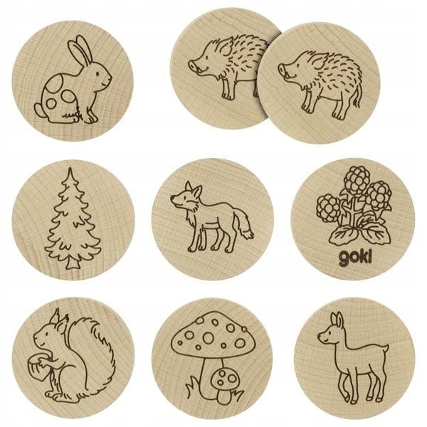 GOKI Gra memory memo drewniane LAS leśne zwierzęta