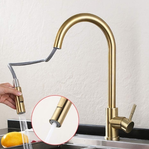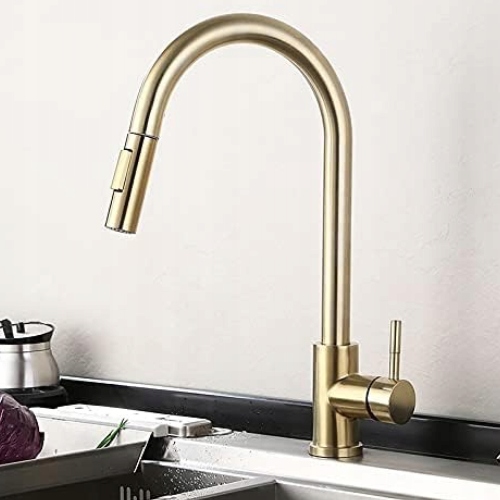GOLD KITCHEN змішувач з ВИСУЙНИМ ПОВОРОТНИМ ВИЛИВОМ BRUSHED GOLD PRO