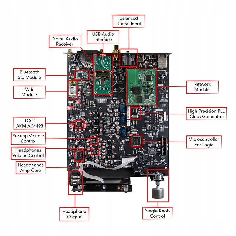 DS-10 має функцію ввімкнення/вимкнення високого рівня якісний аналоговий аудіо попередній підсилювач, керований дистанційним керуванням або власною програмою, що дозволяє регулювати пристрій через аналоговий каскад, навіть за допомогою веб-плеєрів, гарантуючи найкращу продуктивність.