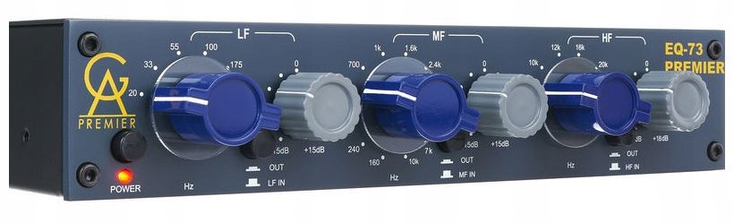 Golden Age Project EQ-73 Premier — це 3-смуговий еквалайзер класичного дизайну з благородним вінтажним характером. Для середньої смуги встановлені 2 індукційні котушки від традиційного виробника Carnhill, що забезпечило насичене і повне звучання. Частотні діапазони окремих смуг були підібрані таким чином, щоб не тільки охоплювати весь звуковий діапазон на розумних відстанях, але й уможливлювати творче формування звуку шляхом накладання частот. Висока частота 24 кГц кваліфікує EQ-73 Premier як повітряний еквалайзер для тонкого покращення присутності та розташування.