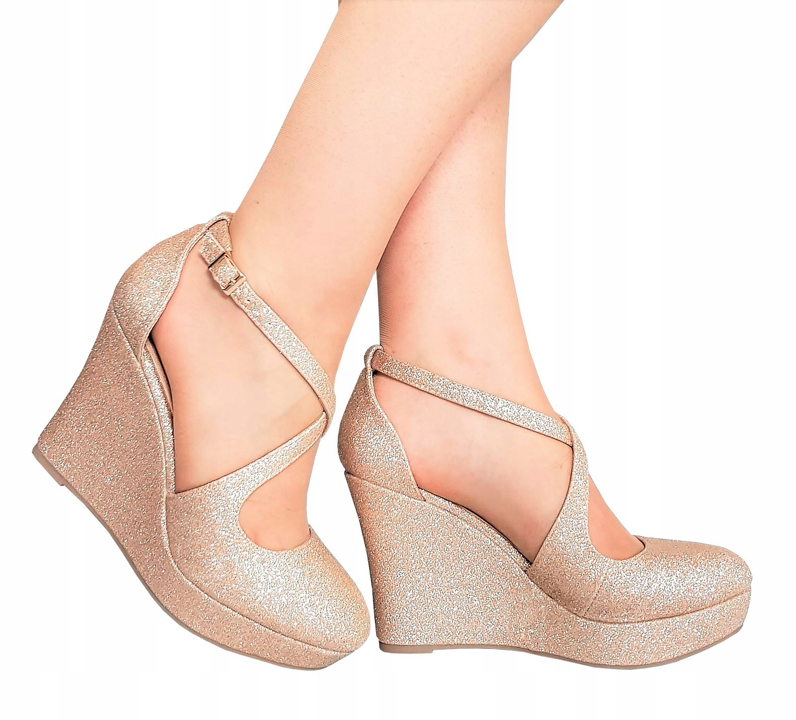 ***** ФАНТАСТИЧНЕ ВЗУТТЯ *****Чудові золотисті туфлі на зручній танкетці та платформі з елегантної парчової екошкіри. Вони чудово виглядають на ногах.