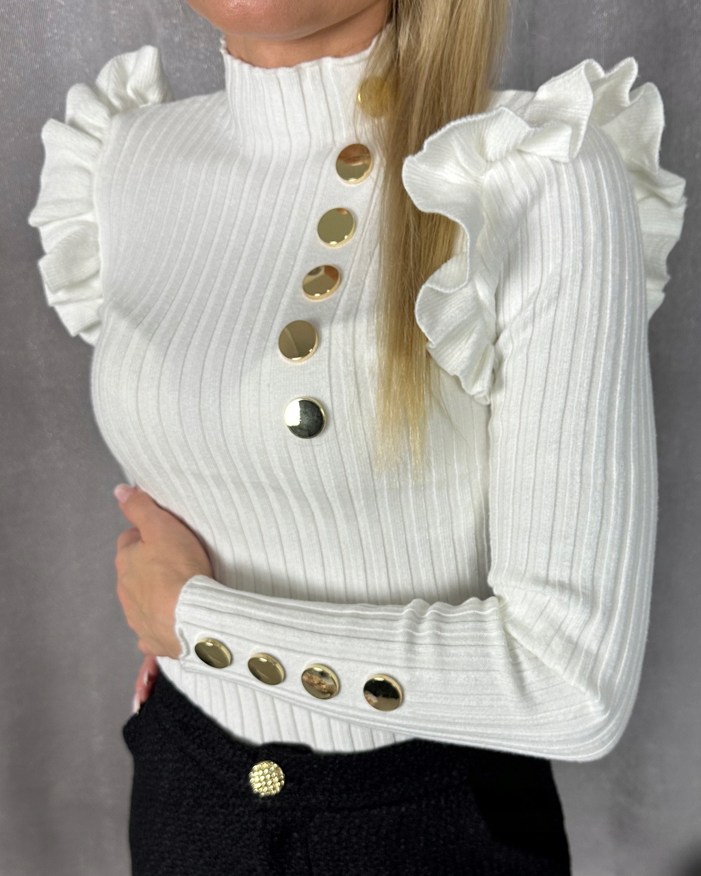 Golf ecru великі золоті кнопки насоси ребристого светр S/M