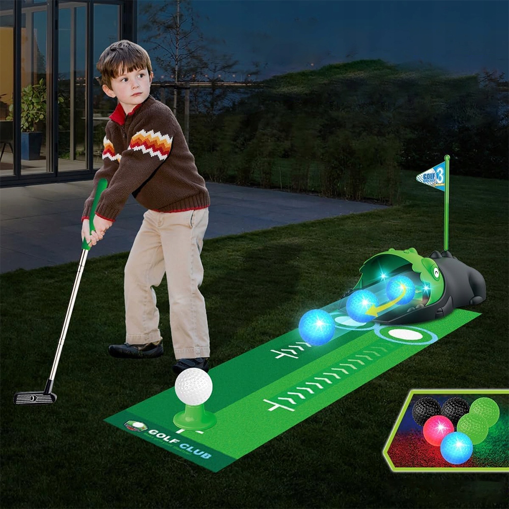 Темрява для м'ячів для гольфу та світиться поверненням, веселощі тривають навіть вночі. Просто вдаривши світлодіодний м'яч для гольфу, і він почне блимати після удару. Діти люблять барвисті луки, які вони створюють під час польоту в повітрі, і легко знайти, де він знаходиться.