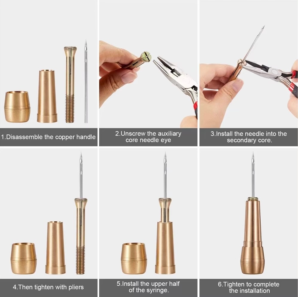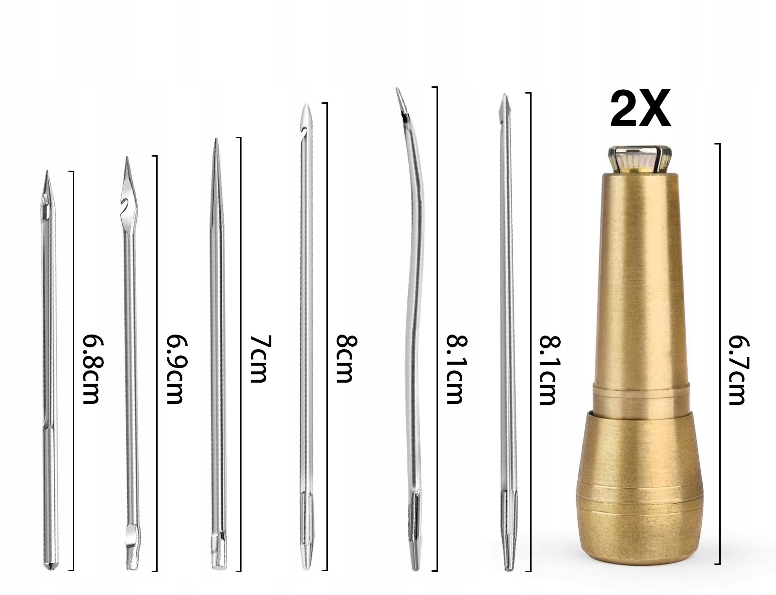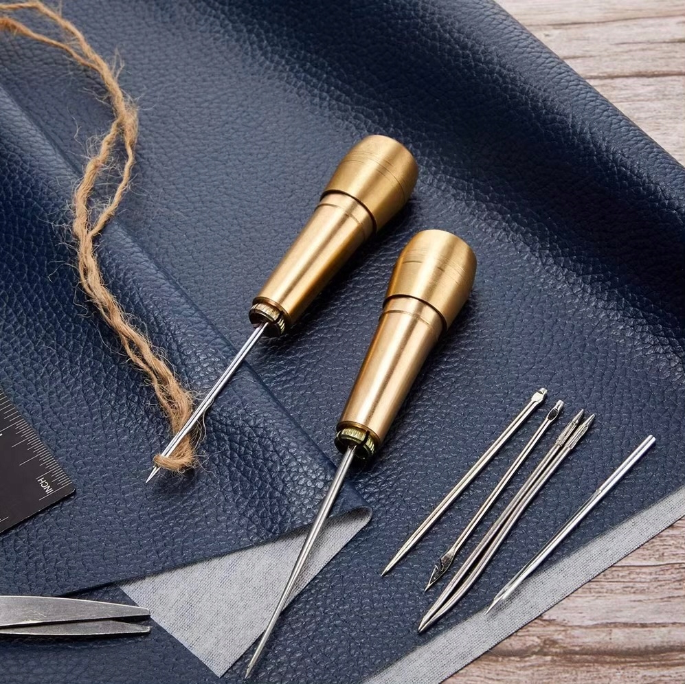 Igły -Szydło do szycia skóry - dwa mosiężne uchwyty + 6 igieł SUPER JAKOŚĆ