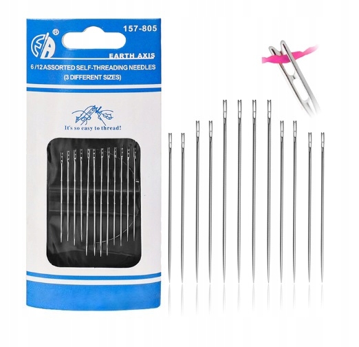 Набір самозаправних голок не тільки практичний, але й надзвичайно функціональний. Вони були розроблені, щоб зробити заправлення різьби простим і безпроблемним. Незалежно від типу ниток або тканини, ці голки ідеально підходять для всіх видів ручного шиття.