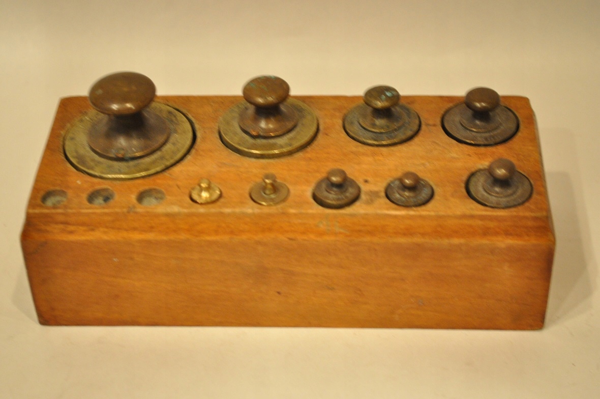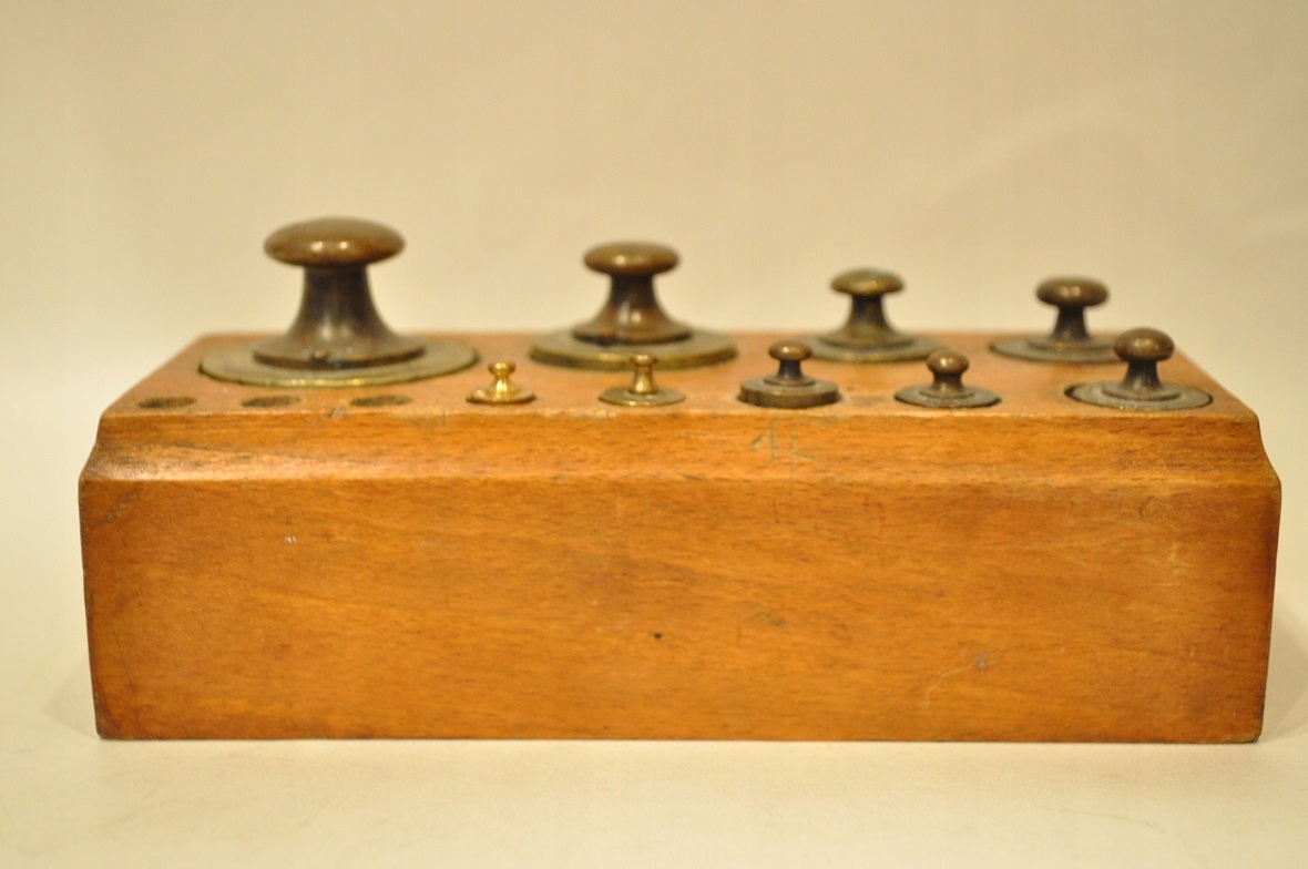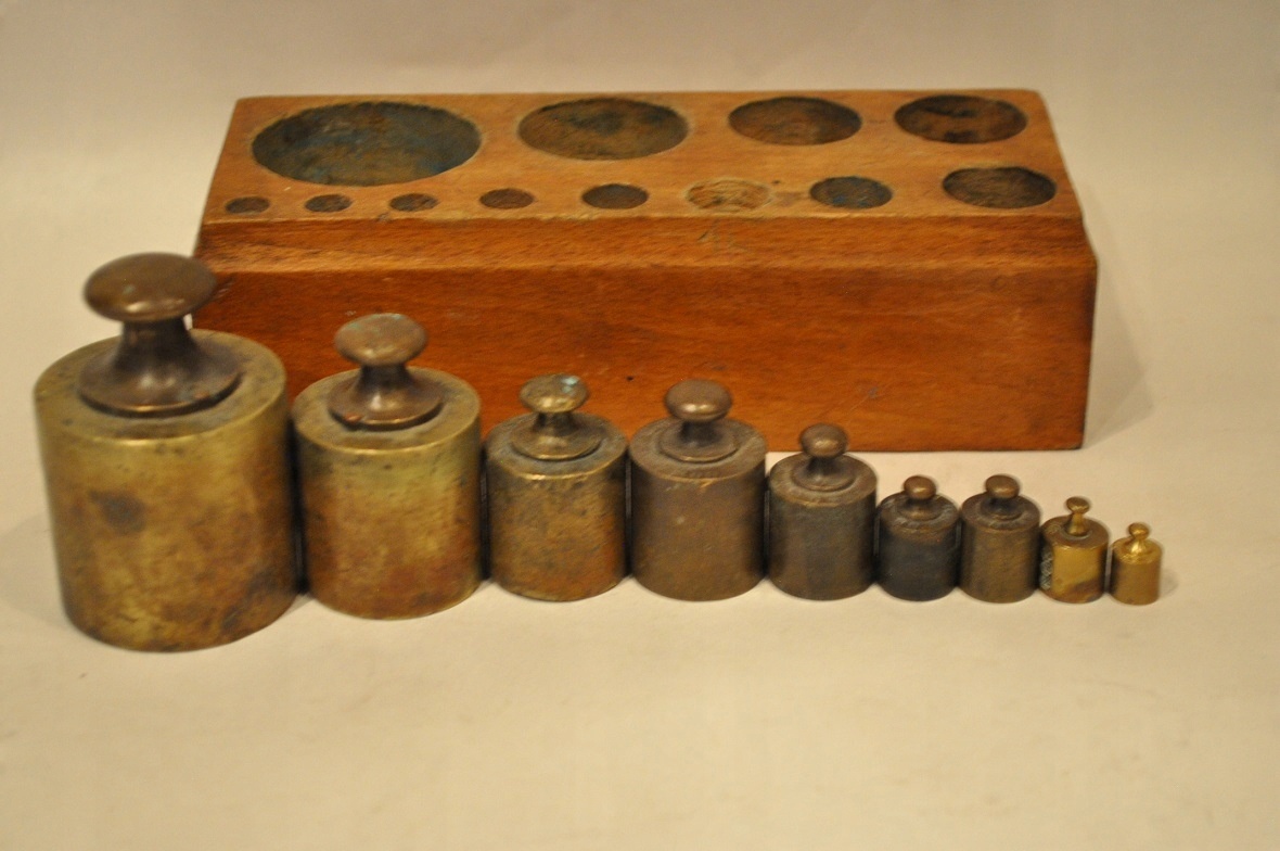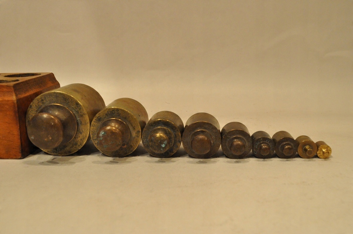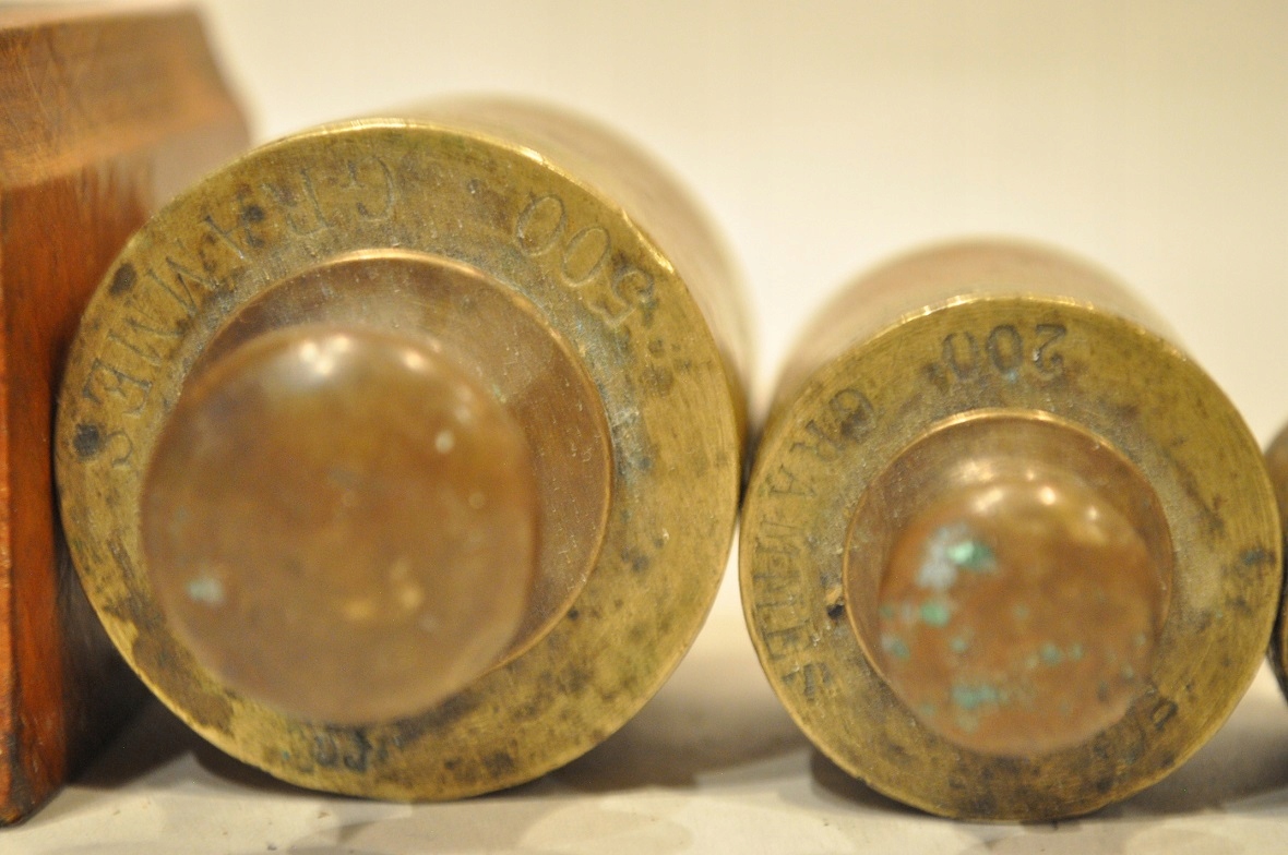 Окрім двох найменших гир - бронзи, неочищеної латуні - покритої оригінальною, старою, темною патиною.