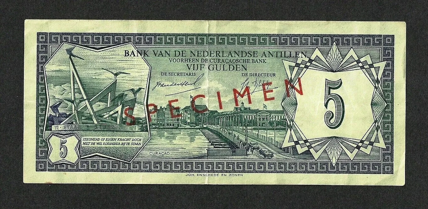 Голландський Antyle 5 Зразок Гулдена 1967 р. P-8AS VF ++ Дуже рідко!