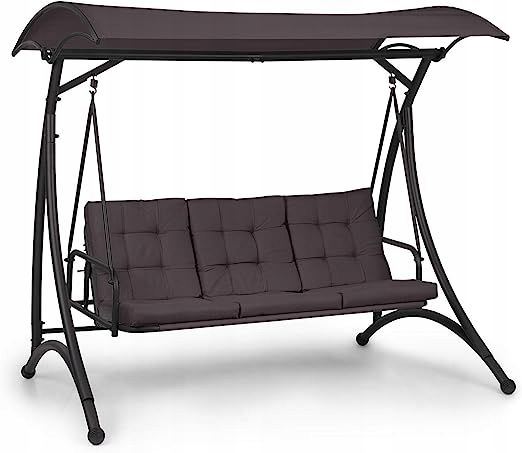 Завдяки власній вазі 36 кг міцна сталева конструкція є стабільною та міцно стоїть на землі. Арочна дах садових гойдалок захищає від прямих сонячних променів і сторонніх поглядів сусідів. Поліестерове покриття оббивки легко миється, тому гойдалки надовго збережуть чудовий зовнішній вигляд. Неважливо, відпочиваєте ви самі чи компанією з двох-трьох людей – гойдалка Blumfeldt Hollywood Marbella стане головним місцем відпочинку у вашому саду та на терасі.