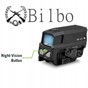 Щоб перевести UH-1 у режим нічного бачення, натисніть і утримуйте кнопку NV. Відрегулюйте бажану яскравість підсвічування. Натисніть і утримуйте кнопку NV, щоб повернутися до останнього налаштування денного світла. UH-1 повернеться до останнього використовуваного налаштування NV, коли ви наступного разу повернетеся до режиму NV.