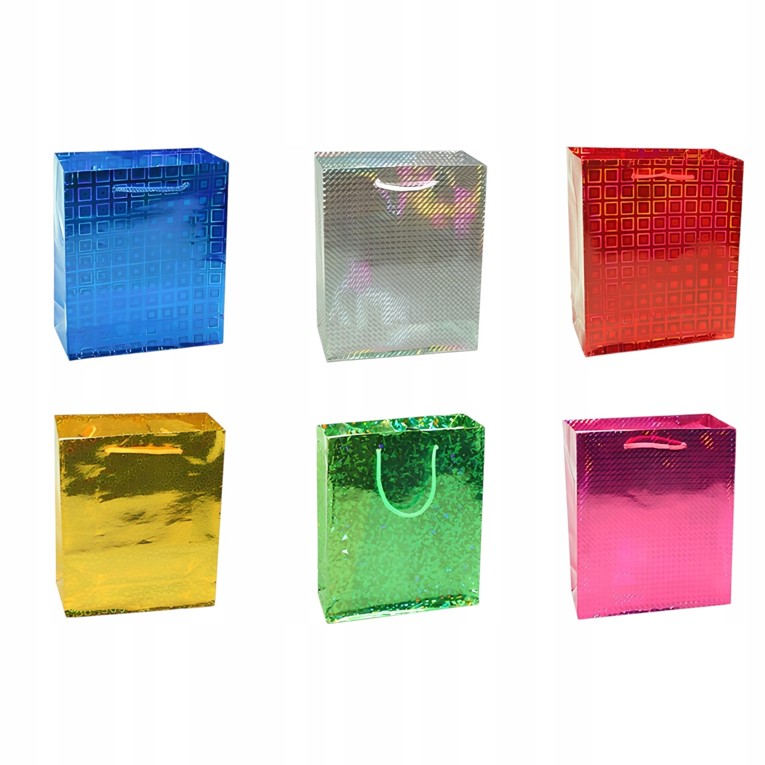 Голографічний подарунковий пакет - це стильна упаковка, яка надає унікальний вигляд. Блискуча поверхня привертає увагу і робить кожен подарунок розкішним.