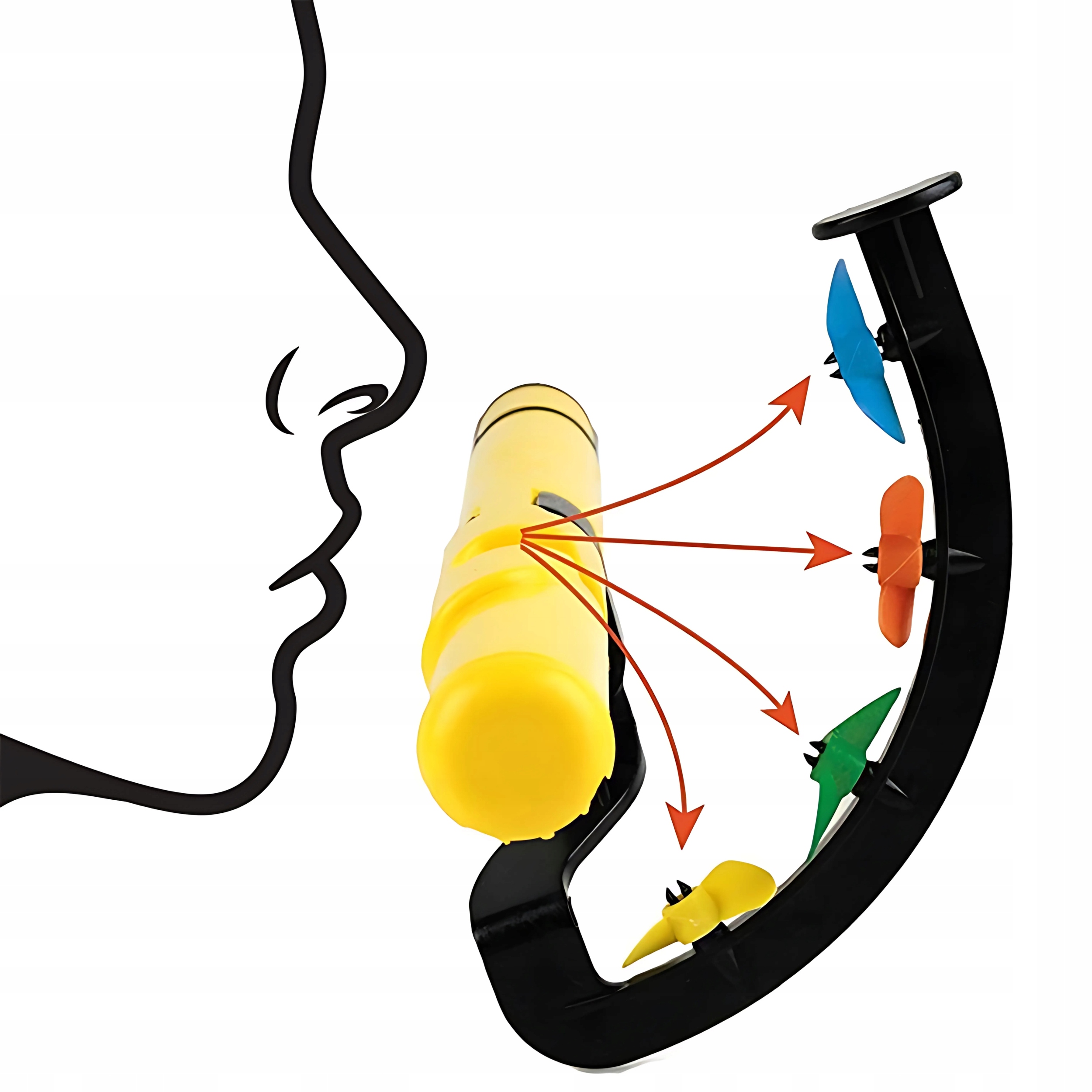 Унікальною особливістю V-TONE FP1 є 4-кольорові (синій, жовтий, червоний і зелений) вентилятори, розміщені на кількох висотах, завдяки чому легше контролювати напрямок повітряного потоку ✅. Правильно розташувавши губи під час видування, користувач може точно формувати звук ✅. Це рішення допомагає навчитися контролювати дихання та зміцнити м’язи обличчя, що безцінне під час щоденних вправ. Завдяки цьому інструменту досягти чітких і повних звуків стає набагато легше для кожного учня ✅.