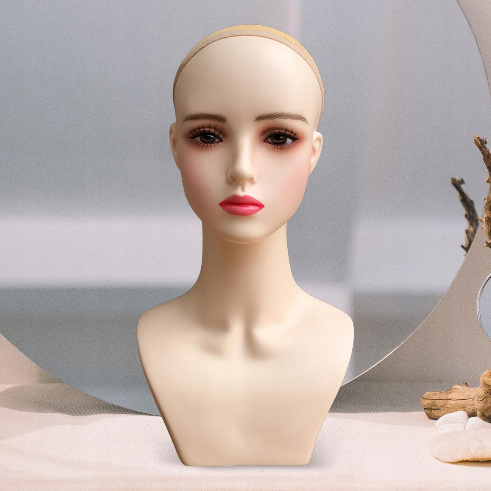 [розмір продукту]: окружність головки манекенів становить 54 см/21,26 дюйма, ширина плечей 24 см/9,45 дюйма та висота 45 см/17,72 дюйма. Легко чистити. Для голови, пов'язки на головах, головний убір, окуляри, намиста, сережки, шарф тощо