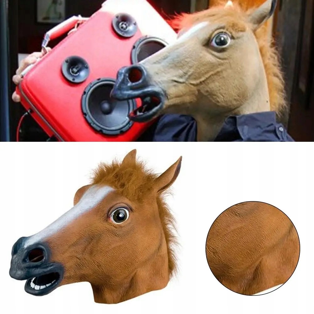 Якщо ви шукаєте оригінальну ідею подарунка, відмінним вибором стане кінська латексна маска. Ідеально підходить для різних випадків - від днів народження до різдвяних вечірок і Хеллоуїна! Вона сподобається кожному шанувальнику тварин, коней або любителю оригінальних святкових аксесуарів.