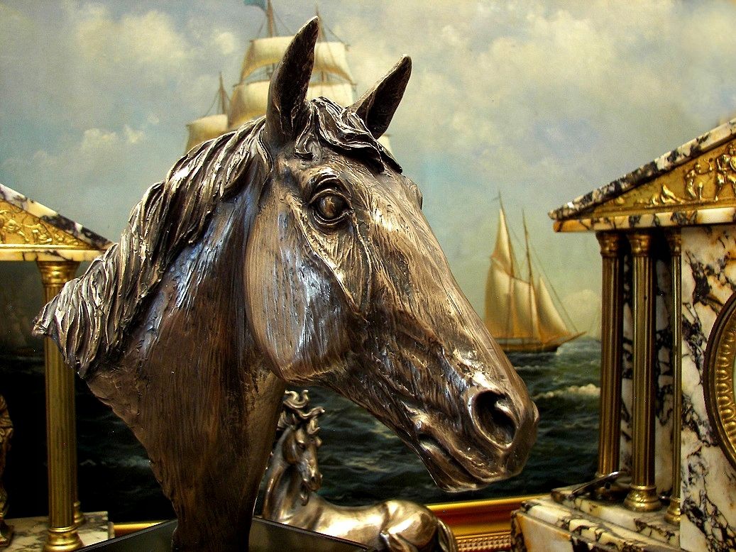 Запрошую придбати чудову статуетку із зображенням голови коня на постаменті.Це красива,виразна,благородна голова коня.Виріб чудово прикрасить вітальню любителя коней,клубну кімнату,а також чудово підійде як трофей у змаганнях з кінного спорту завдяки можливості кріплення таблички з написом на постаменті.VERONESE, продукт бренду вищого класу.Зверніть увагу на надзвичайно точне виконання, ми постаралися представити деталі на багатьох фото.Товар виглядає набагато краще в природі. Це може бути чудовою ідеєю оригінального подарунка для тих, хто любить коней, можливо, як приз на змаганнях, красивий трофей, особливо якщо ви замовите його з гравіюванням.