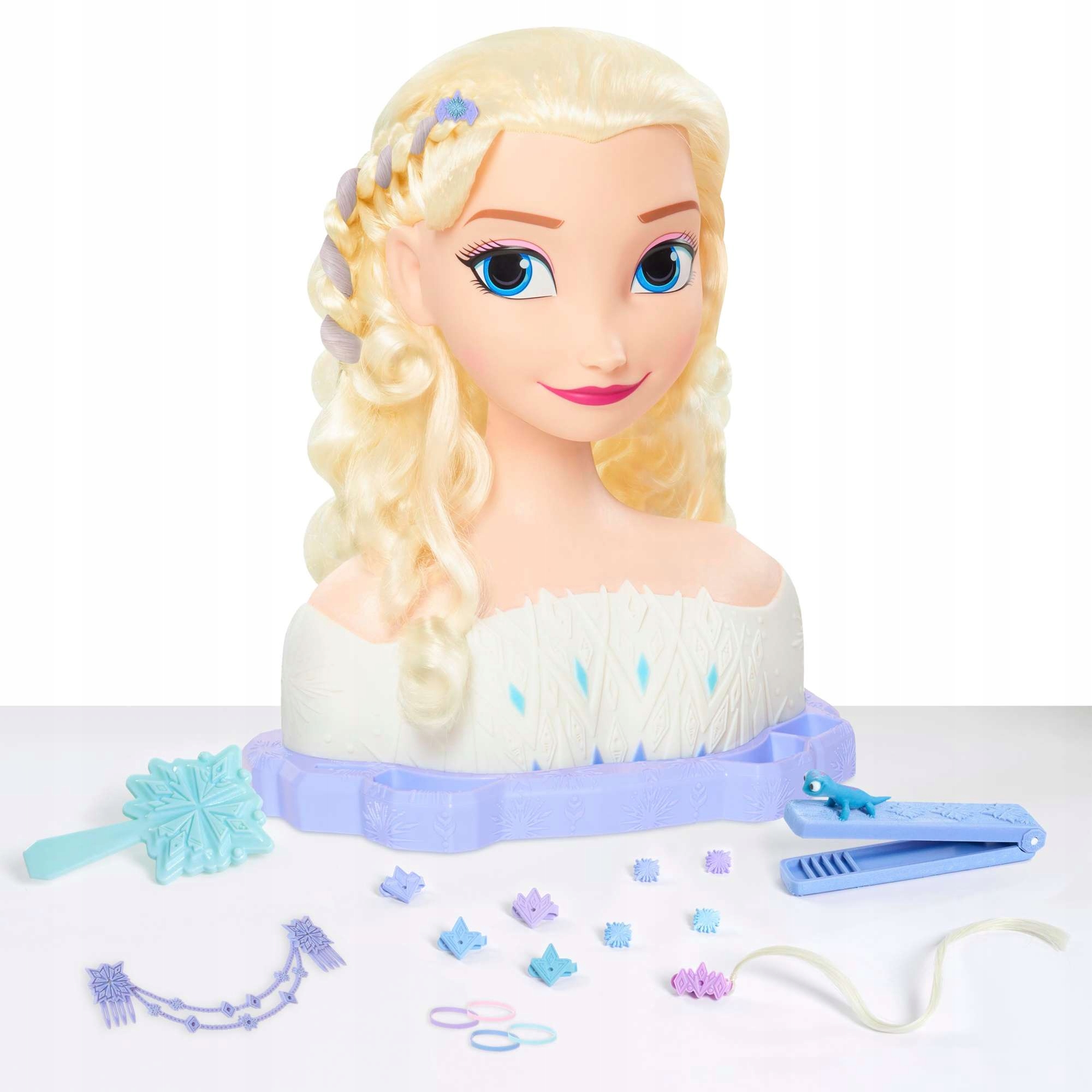 Стилістська голова точно відтворює казкового персонажа та одну з сестер Ельзу — гарну дівчину з блакитними очима та довгим світлим волоссям. Ви також можете побачити фрагмент синє плаття, яке сподобалося одній із сестер. Її волосся заплетене в короткий розпущений хвіст, який піддається різноманітним укладкам. Цей чудовий набір дозволить кожній дівчині побувати в ролі перукаря та візажиста. Для прикраси ляльки Ельзи маленьким стилістам необхідно 18 елементів. Головка для вичісування також стимулює уяву та дозволяє творчо проводити вільний час.