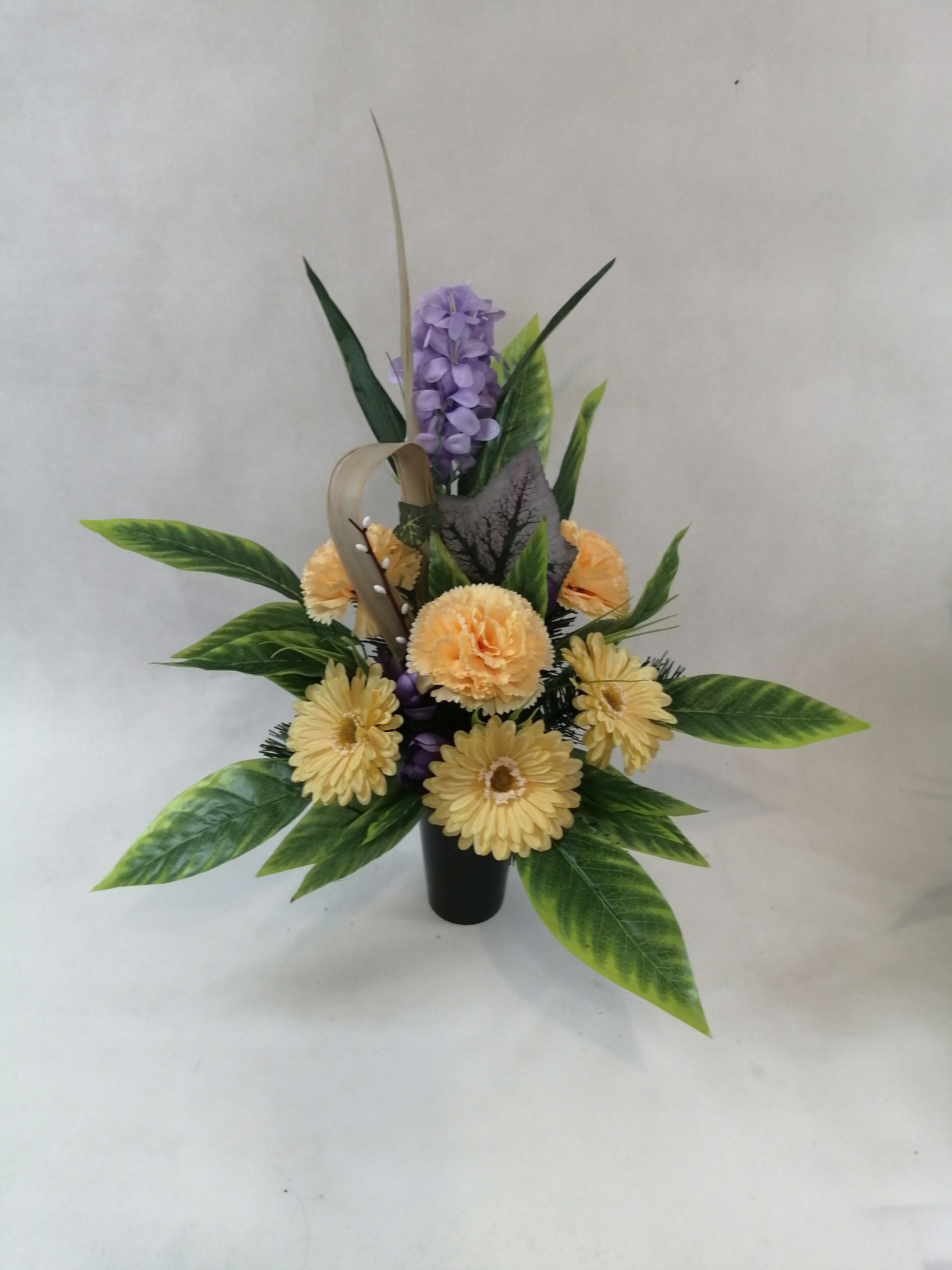 The composition is made of artificial flowers, the whole is filled with leaves and additions 35cm
