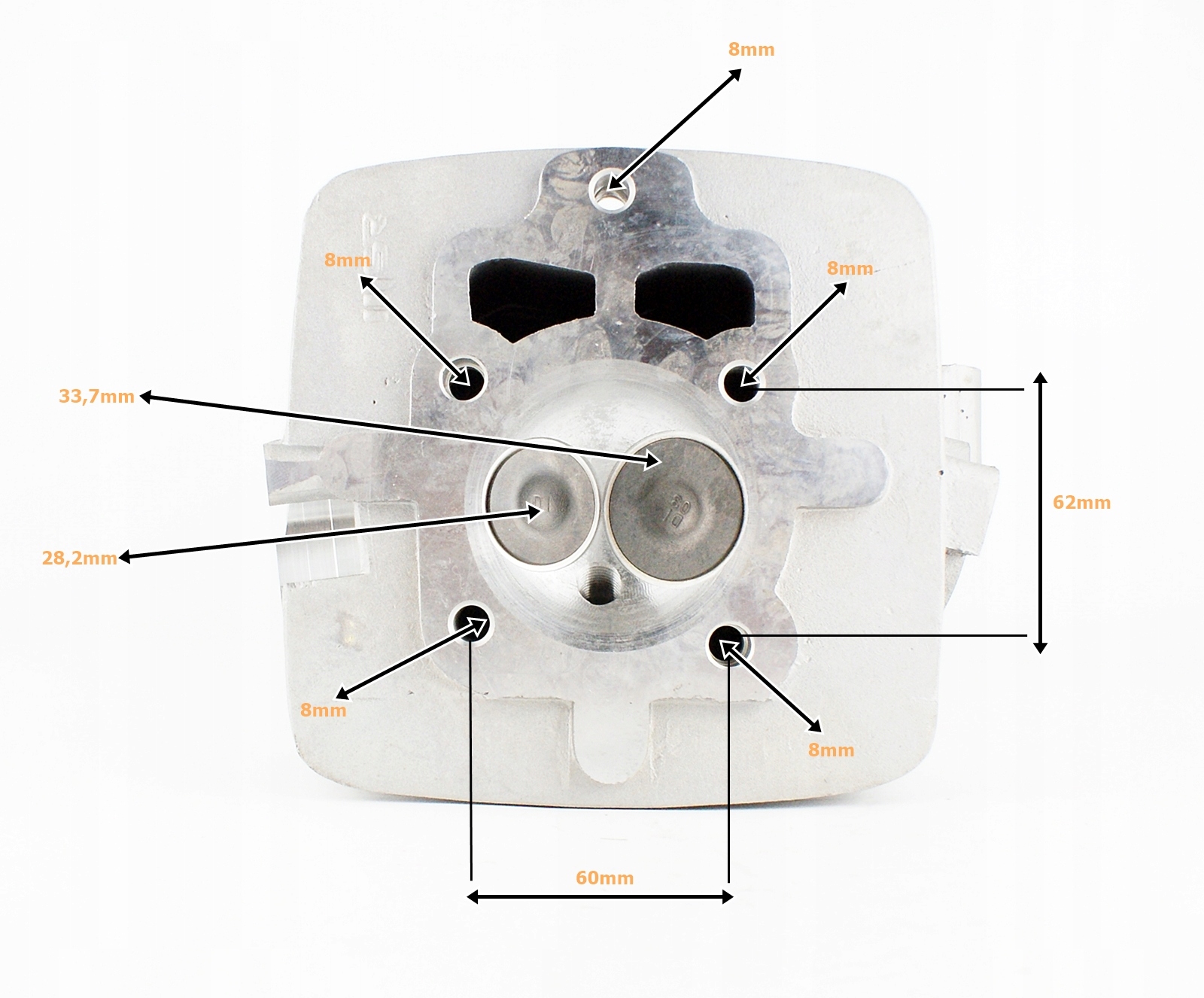 Алюмінієва головка з комплектними клапанами, ущільнювачами, пружинами, клапанною клавіатурою та кришкою об'ємом 250 куб.см, виготовлена з високоякісних матеріалів. Він ідеально підходить як заміна оригіналу, а також добре працюватиме при зміні об’єму автомобіля. Збільшено камеру згоряння в головці.