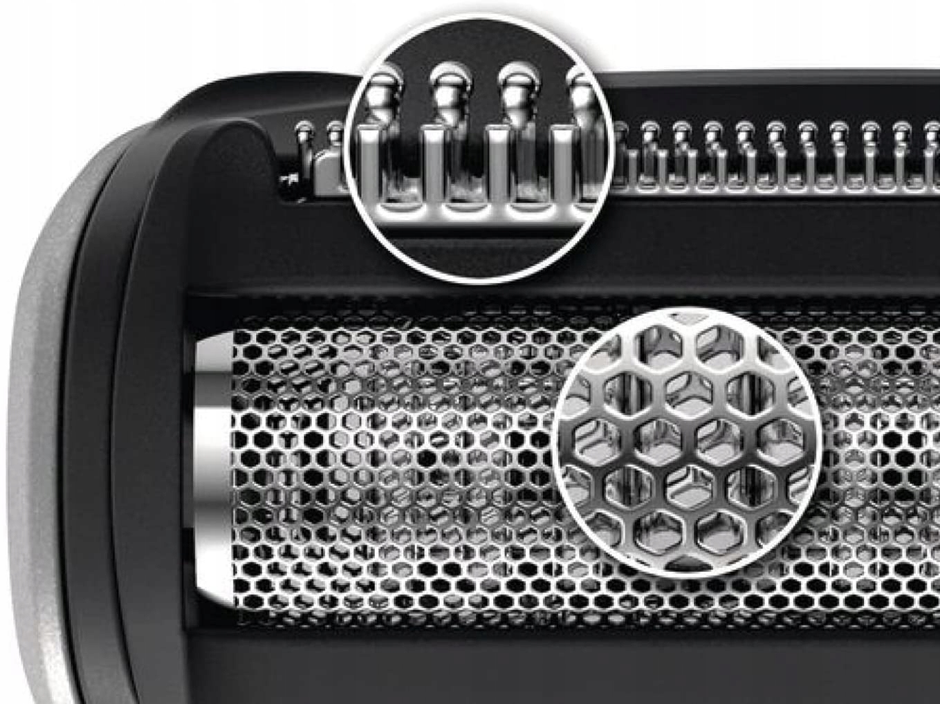 - двосторонні тримери зрізають довше волосся для точних результатів, закруглені наконечники та антиалергічна плівка захищають шкіру під час гоління