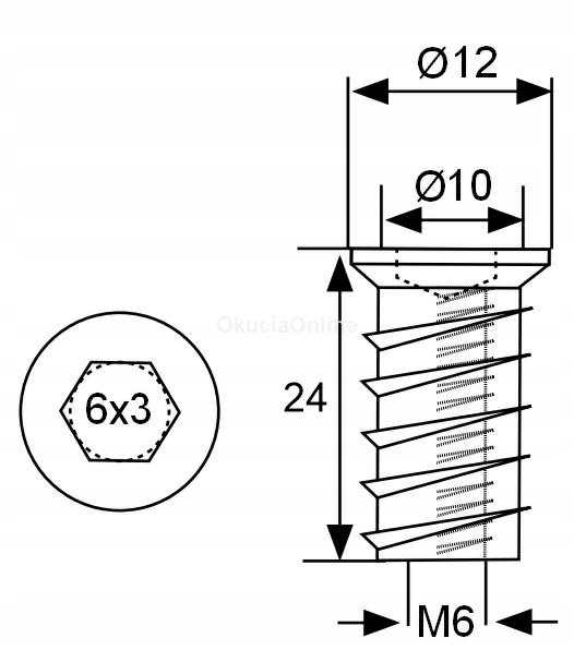 Головка дворізьбова, шуруп М6х24мм, вставка, картонна коробка, 2000 шт.