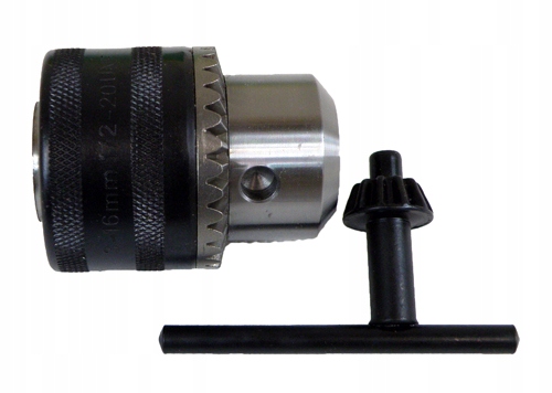 - Швидкозажимний свердлильний патрон (свердлильна головка), внутрішні елементи виготовлені з високоякісної сталі, а зовнішній корпус наполовину виготовлений з міцного та ударостійкого пластику, має відстань між губками від 3 мм до 16 мм.