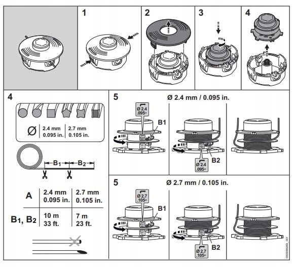 - стандартний діаметр волосіні, що використовується в головці: 2,4 мм
