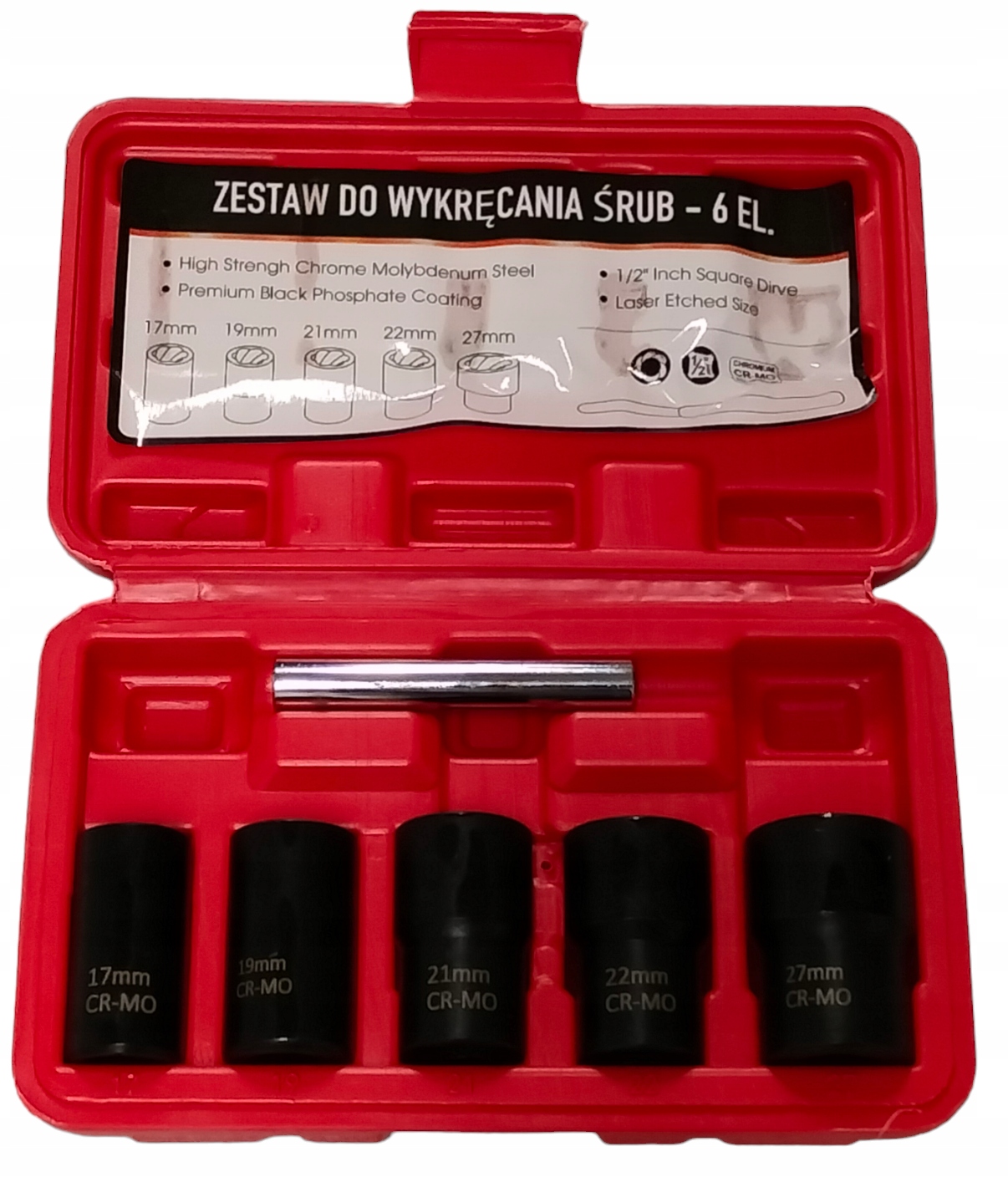 ГОЛОВКИ ДЛЯ ПОШКОДЖЕНИХ ГВИНТІВ 1/2'' НАБІР ГОЛОВОК 6 EL ТРАЩІТКА