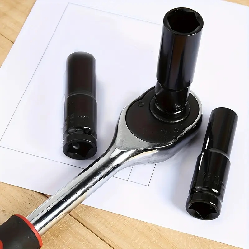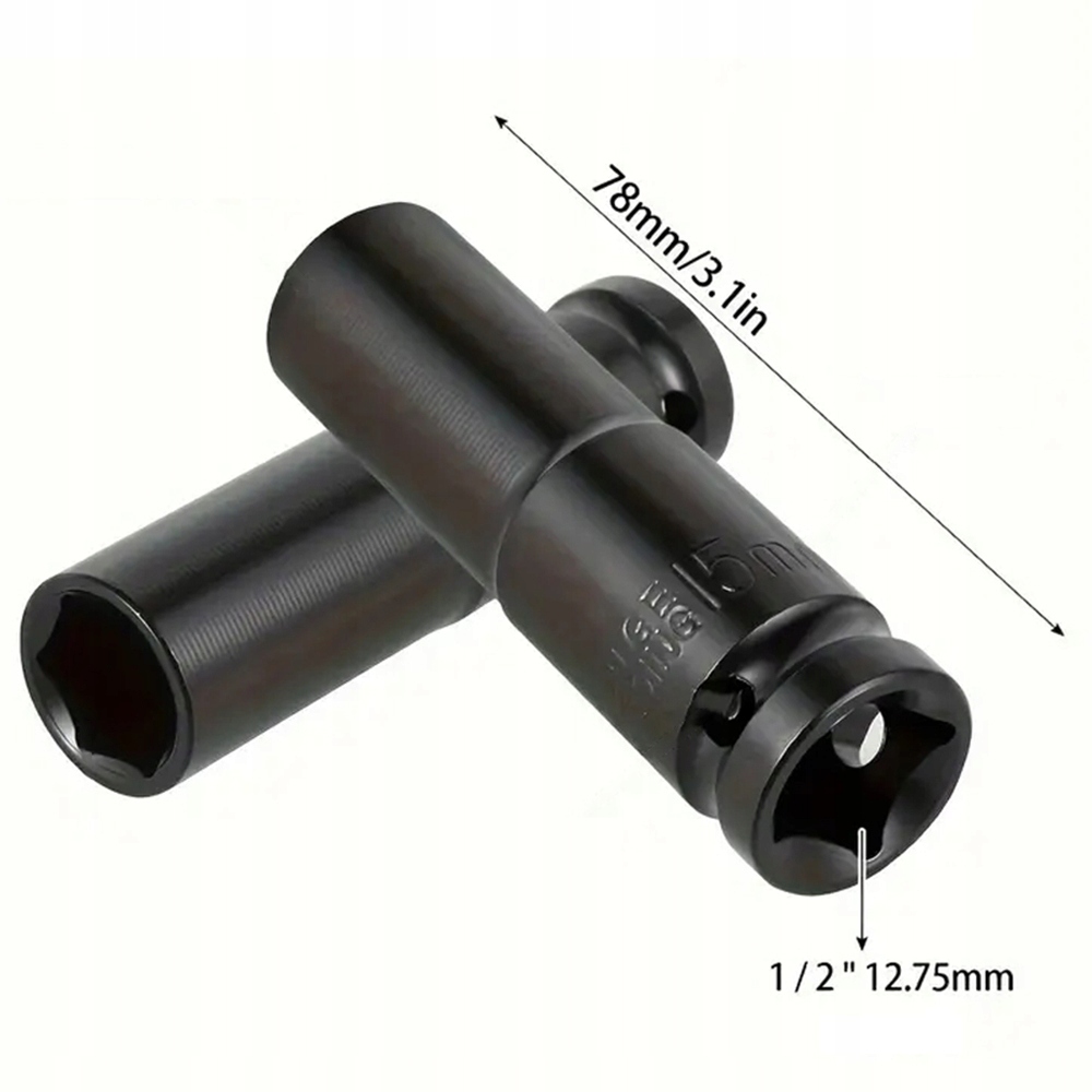 Набір торцевих ключів на 1/2 дюйма викуваноз високоякісної сталі та піддано високочастотному загартуванню, що значно підвищує твердість і стійкість до ударів. Шестигранна поверхня ударного ключа фосфатована для запобігання іржі та корозії, подовжуючи термін служби.