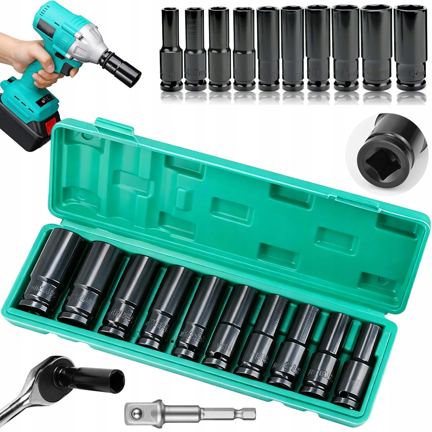 головки ударні довгі торцеві ключі глибиною 1/2'' 10-24мм 10 шт.