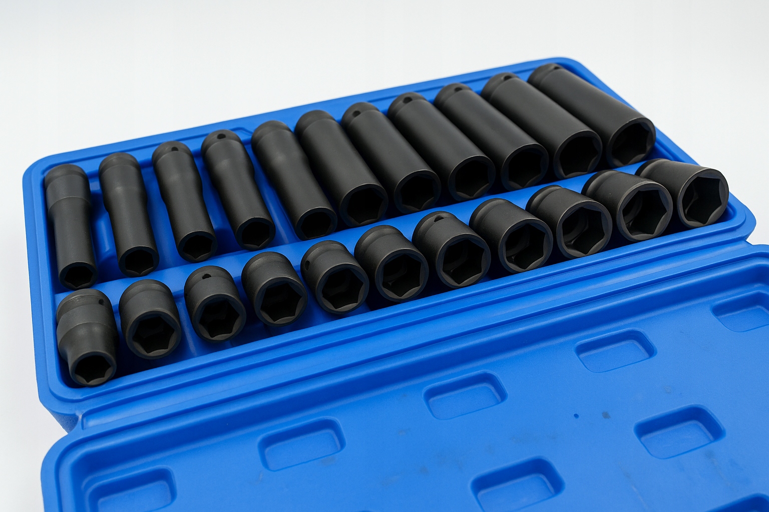 ✔️ Набір ударних розеток є важливим інструментом для тих, хто цінує ефективність і безпеку. Ідеально підходить для роботи з пневматичними та електричними гайковертами - від демонтажу автомобільних коліс до більш важких робіт з підвісками та двигунами.