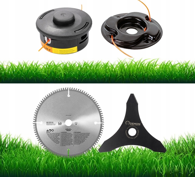 Тримерна головка та тример добре працюватимуть нанизькій та середній траві, тоді як диск Widia та тризуб чудово працюватиме в густо порослій траві чи кущах