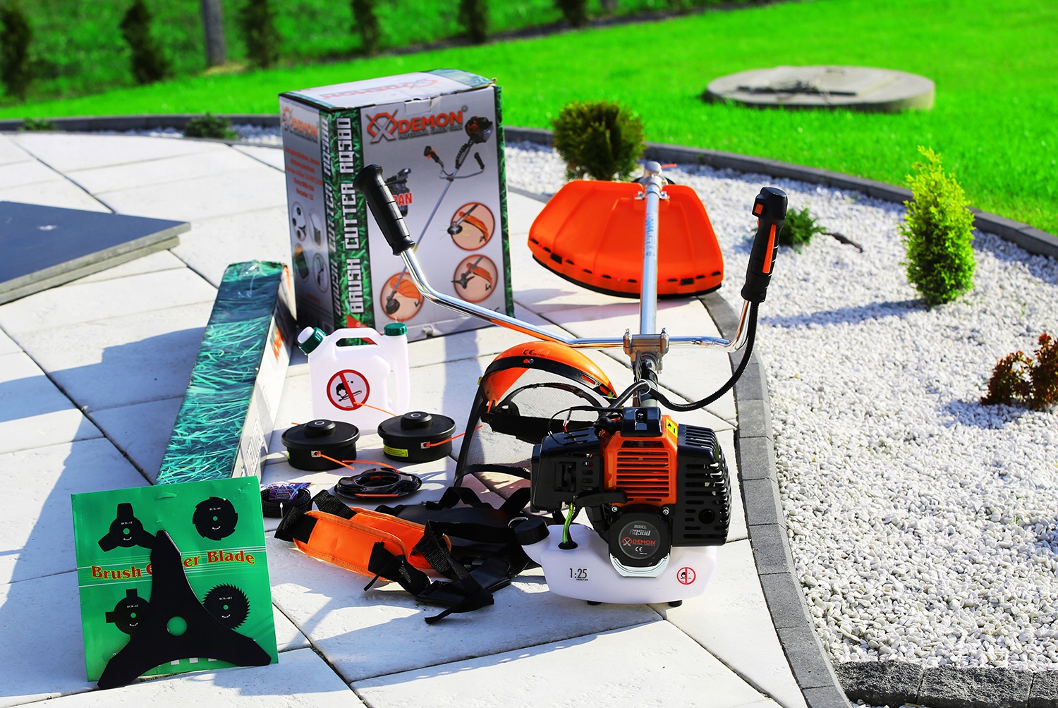 Найбільше потужний на ринку двигун DEMONвстановлюється безпосередньо на ручці. Велике лезо відмінно впорається навіть з найсильнішою травою, заростями або кущами, підліском або гілками.
