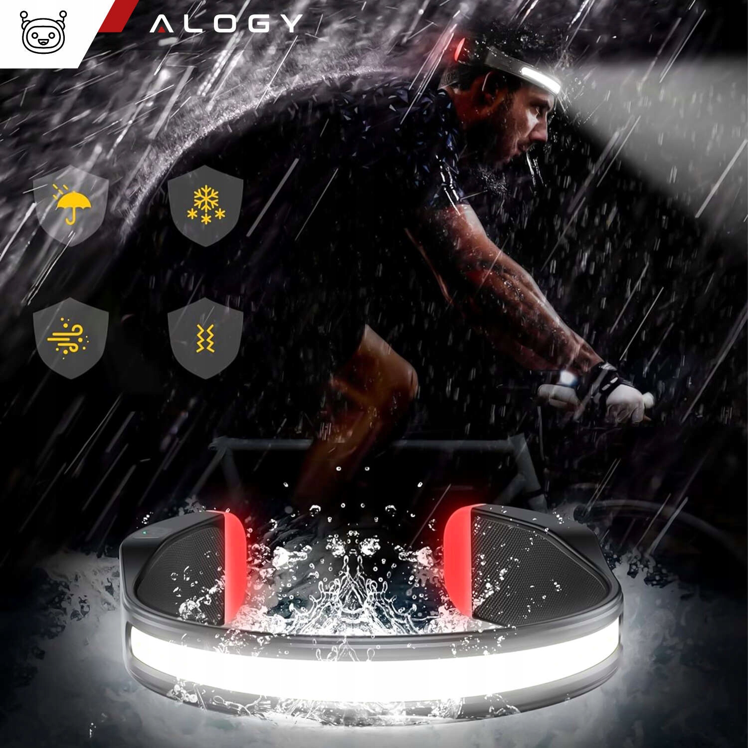 ▶️ Налобний ліхтар COB LED для бігу на велосипеді, міцний, акумуляторний, USB Type C, налобний ліхтар Alogy, IPX4, чорний