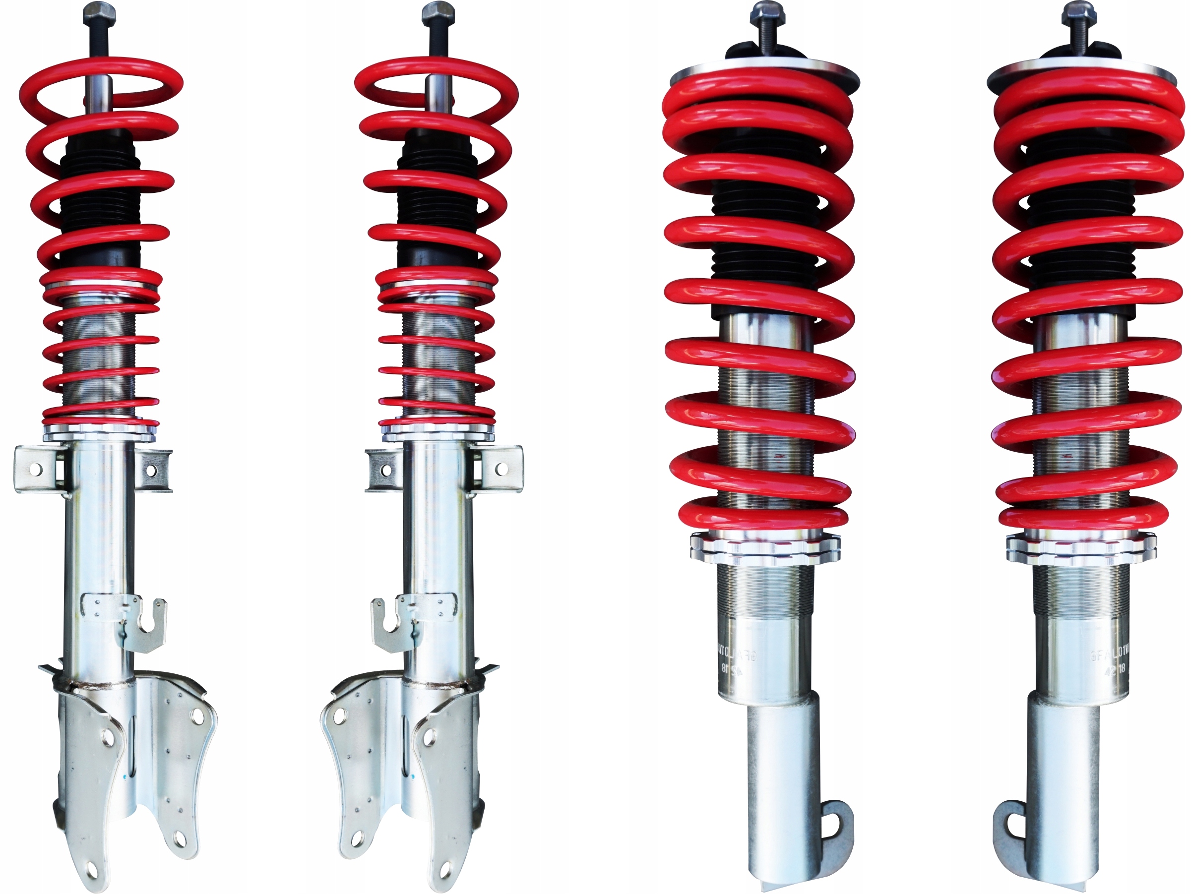 В набір входять 4 різьбові амортизатори, 4 спортивні пружини, ключ регулювання висоти та TUV сертифікат