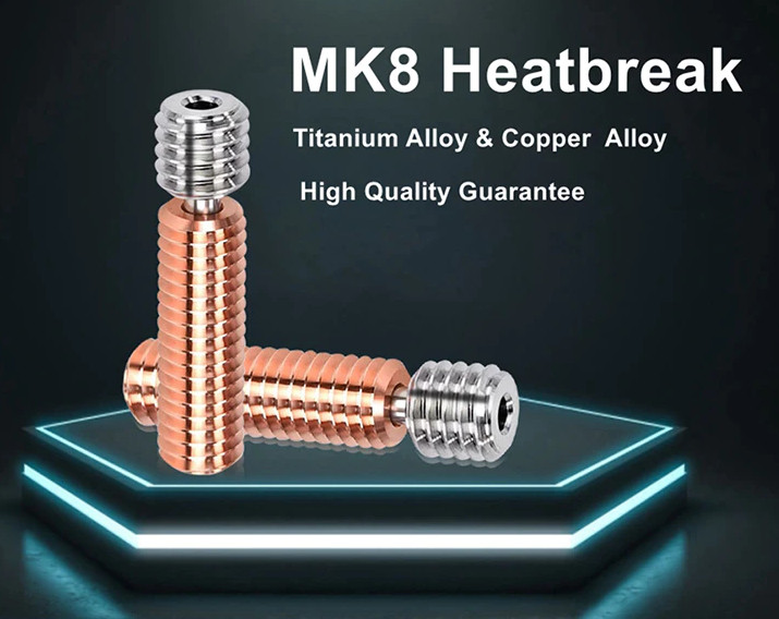 Heatbreak MK8 - Нове покоління та висока якість, ТИТАНОВА головна труба (горловина) з властивостями, незрівнянними з раніше використовуваними трубками.