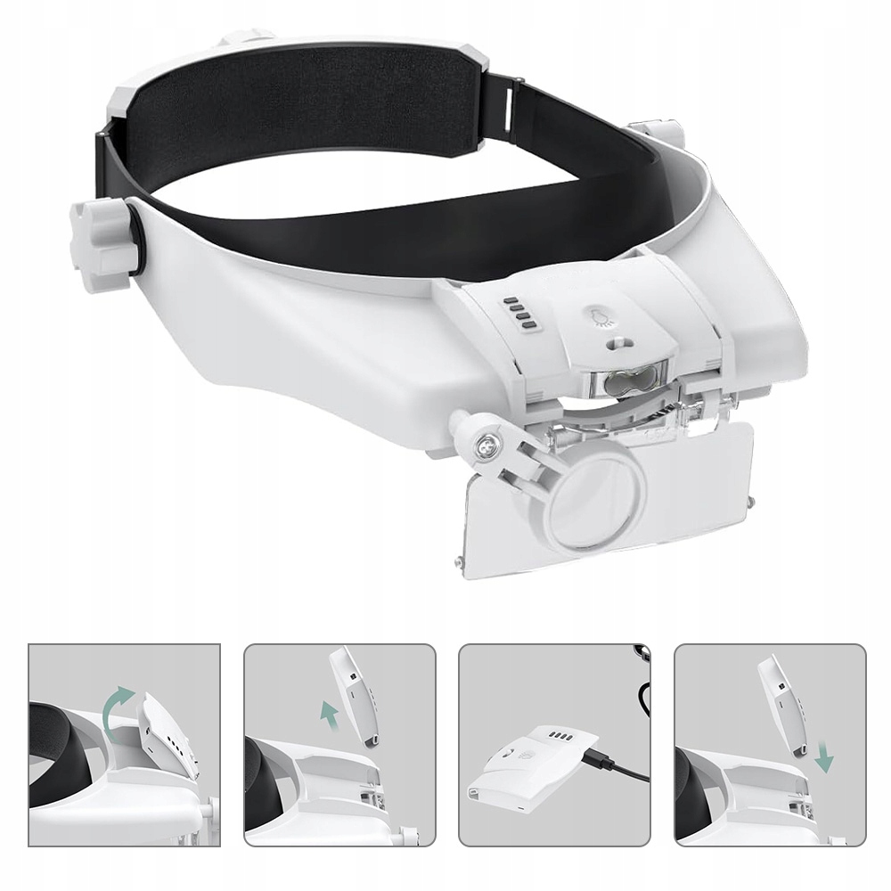 💫💫Відкрийте для себе революційний інструмент для тих, кому потрібна точність і чудова видимість! Нашанаголовна лупа з вбудованим світлодіодним підсвічуванням поєднує потужне джерело світла, високоякісні збільшувальні лінзи та зручне регульоване наголів’я в одному ергономічному пристрої, повністю звільняючи ваші руки. Він оснащений 5 змінними ширококутними об'єктивами зі ступенями збільшення: 1,5x, 2,0x, 2,5x, 3,0x і 3,5x, які можна легко замінити залежно від потреб завдання. Два яскравихсвітлодіодикеруються сенсорним перемикачем і пропонують 2 режими яскравості. Пристрій живиться від вбудованої акумуляторної батареї ємністю 300 мАг (зарядка через USB), яка на одному заряді забезпечує до 7 годин роботи в режимі м'якого освітлення або 3 години в режимі повної яскравості. Індикатор стану акумуляторау верхній частині пристрою показує рівень заряду.