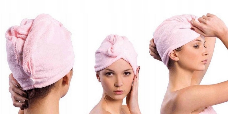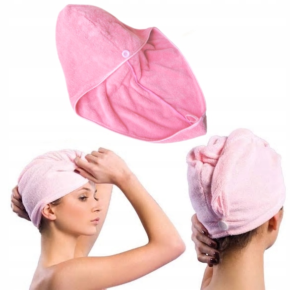Рушник для голови чудово вбирає воду, завдяки чому волосся буде захищено. Добре і надійно тримається на голові. Форма рушника була розроблена таким чином, щоб його було легко покласти на волосся. Має практичну кнопку, яка робить тюрбан стійким.