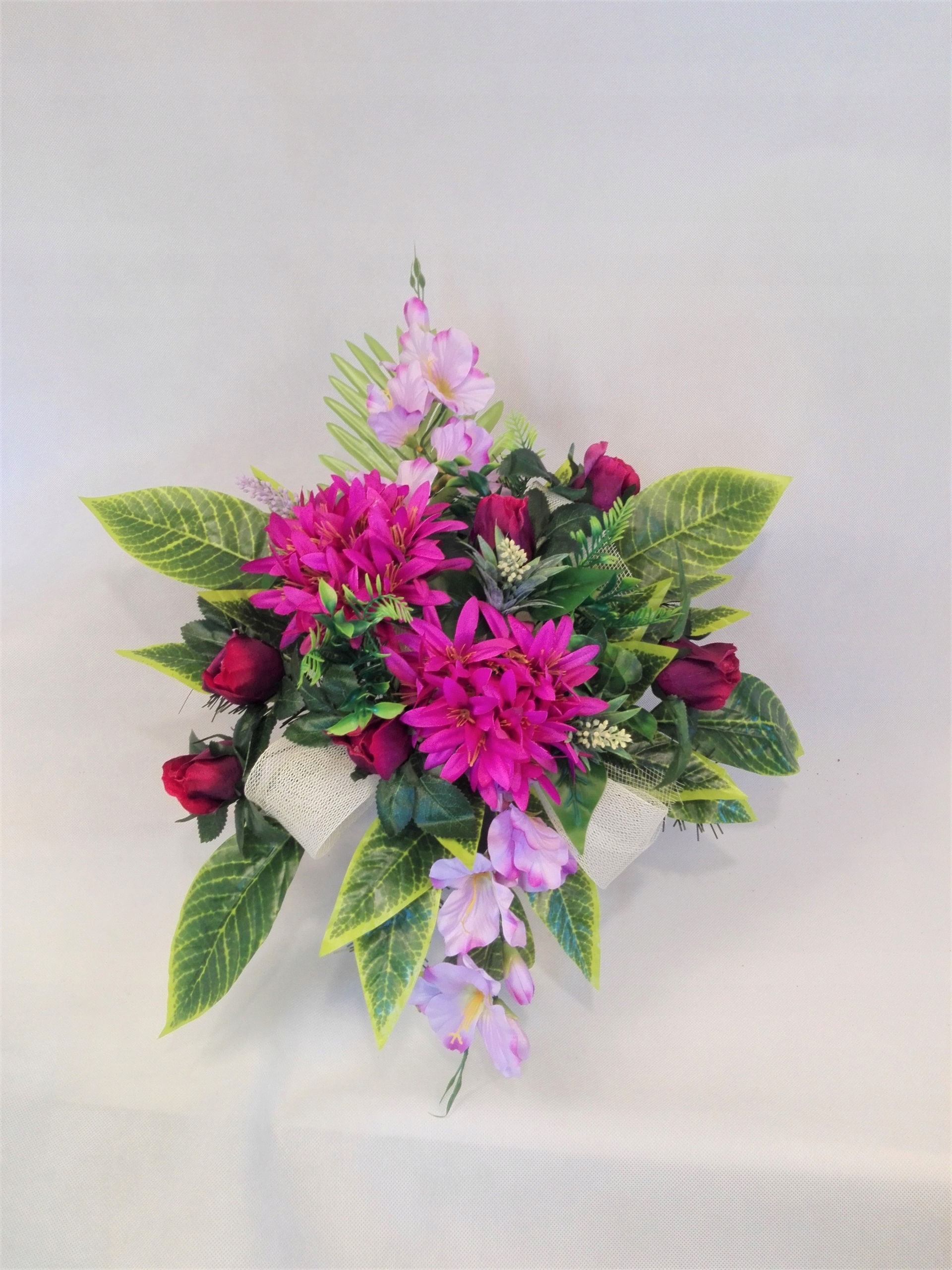 Композія виготовлена з штучні квіти, все заповнене листям та аксесуарами